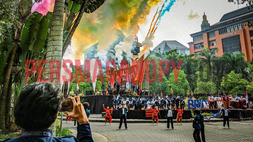 Malang (11/08/2025) — Sebanyak 17.133 mahasiswa baru resmi mengikuti opening ceremony Rangkaian Jelajah Almamater (RAJA Brawijaya) 2025 di Universitas Brawijaya, Senin (11/8/2025). Mengusung tema “Membangun Generasi Intelektual yang Berakhlak Mulia, Adaptif, dan Tangguh Menuju Indonesia Emas 2045”, kegiatan tahunan ini menjadi pintu gerbang pengenalan kehidupan kampus bagi mahasiswa baru melalui konsep hybrid yang memadukan partisipasi mahasiswa secara luring di tiga lokasi utama kampus dan daring melalui zoom meeting, sebagai wujud inovasi penyambutan mahasiswa baru yang aman, inklusif, dan menjangkau seluruh peserta.